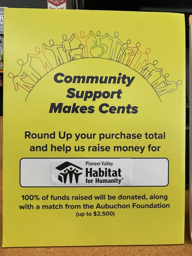 Start date: May 1, 2025End date: May 30, 2025All-day eventLocation: Aubuchon Hardware, 312 Federal St, Greenfield, MAFundraiser Round up your total at Aubuchon Hardware of Greenfield to benefit Pioneer Valley Habitat, now through the end of May.